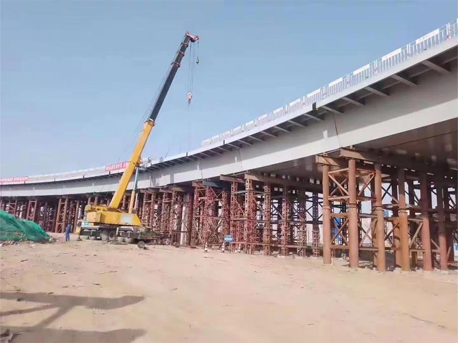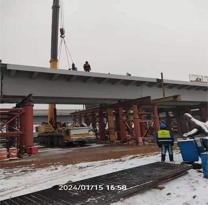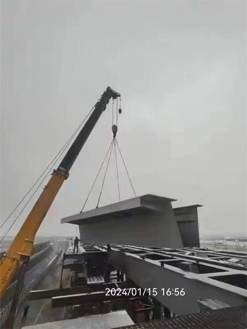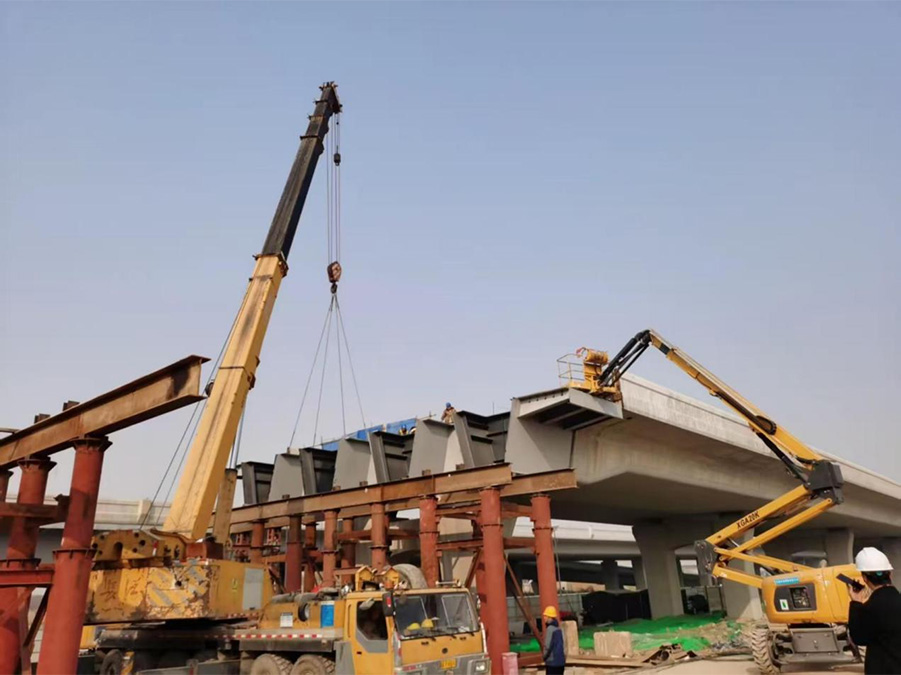 陜西重型機械制造有限公司承擔的航站樓出場道路高架橋項目中的400多塊鋼箱梁,其中50%以上的鋼箱梁為新式疊合梁,該疊合梁的結構復雜程度和單件重量以及多變的外形,為陜重公司的首次加工和安裝,技術難度大。該項目的參建,對陜重公司鋼結構橋梁的制作和安裝具有劃時代意義。