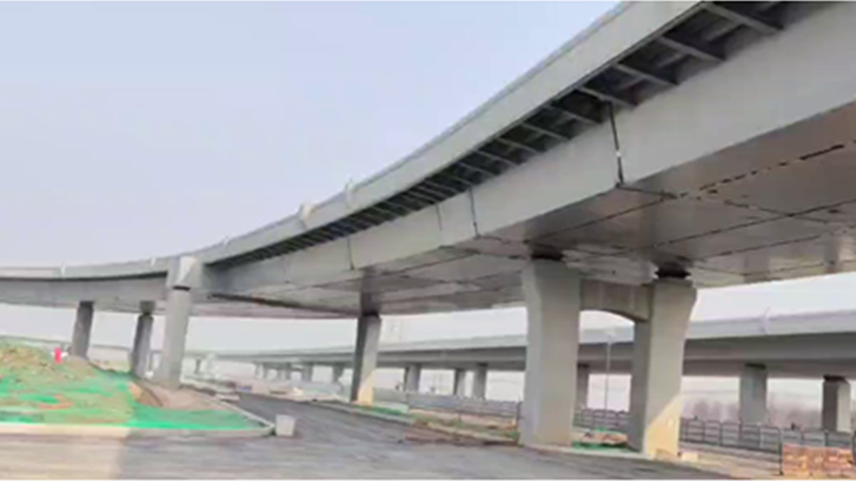 2024年3月,陜重人歷經(jīng)春夏秋冬和不懈努力以及艱辛付出,參建的T5航站樓及站前商務樓出場道路的、由400多塊鋼箱梁組成的、總重量為1.3萬噸的鋼橋項目高標準地按時交工。