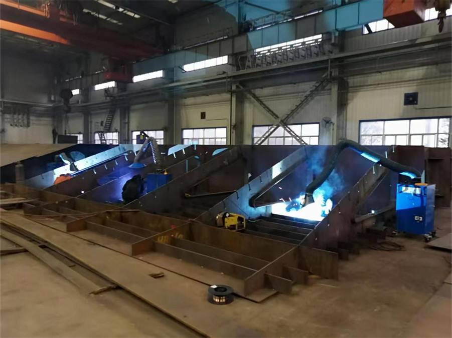 為了嚴把質量關,在材料進廠和生產(chǎn)制作過程中,陜重公司更是自上而下,精益求精,專職檢驗人員從不放過對每張鋼板的進廠檢驗和下料、制作的過程檢驗,對每一條大、小焊縫的反復檢查和探傷;鋼箱梁的加工制作,無論是在外形尺寸上,還是在外觀和防腐質量上,高標準,嚴要求,精細化管理,確保給社會交出安全的、高質量的鋼橋產(chǎn)品。